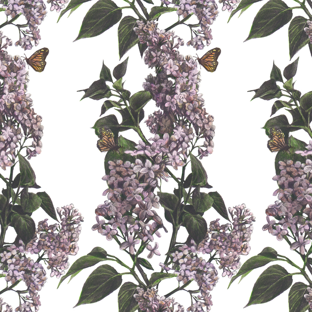Lilac Bloom Color- digital walpaper from hand drawn graphite drawings and watercolor