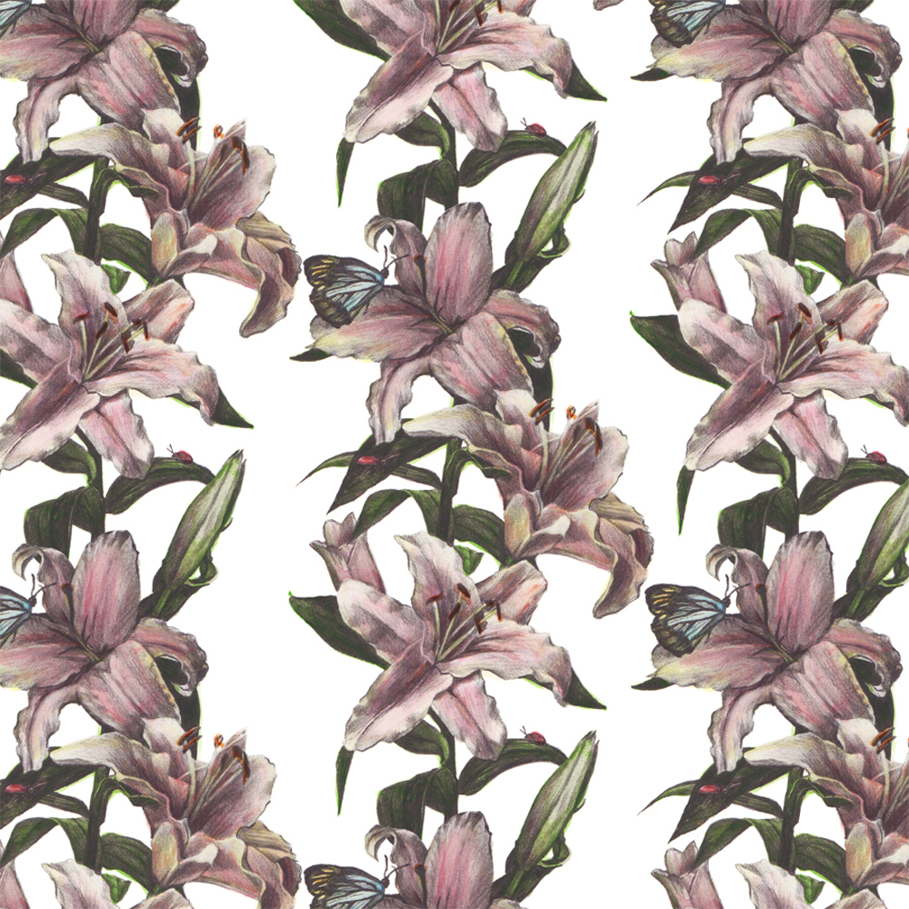 Lilly Bloom Color- digital walpaper from hand drawn graphite drawings and watercolor