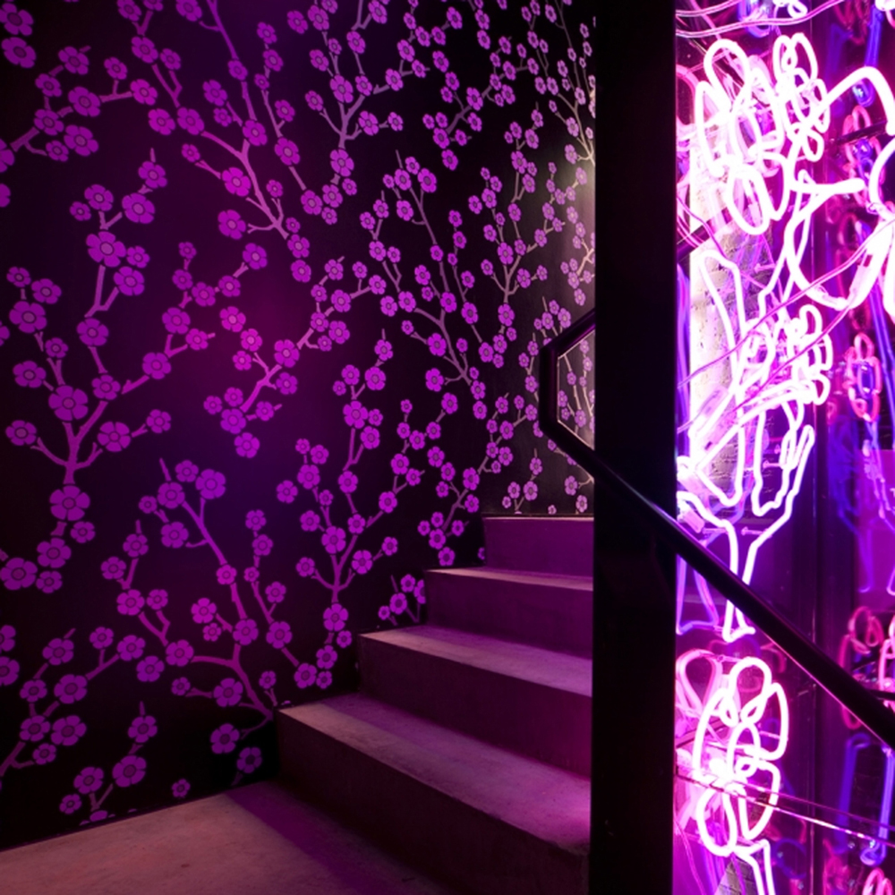 Sakura- hand screen printed wallpaper installation